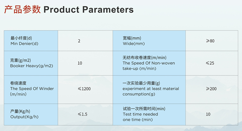 無紡布一體機的產品特點:紡絲和紡粘無紡布一體機,合多種工藝于一體,紡粘無紡布工藝可搭配FDY紡絲工藝,BCF紡絲工藝等。獨特的螺桿結構,能適應更多高分子材料的紡絲實驗。